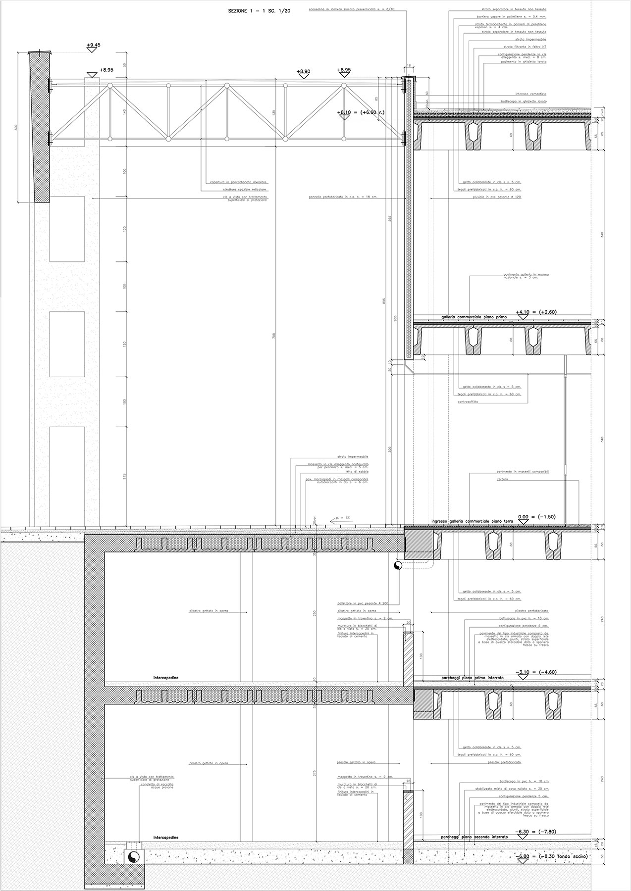 PROGRAM: Architectural, Civil Engineering, Structural Engineering of a commercial gallery with annexed mall and underground parking lot of 2100 parking spaces